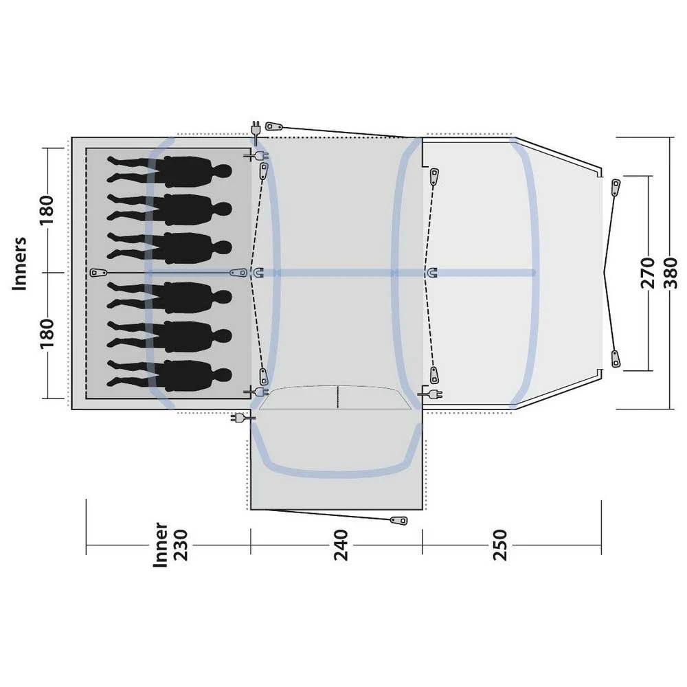 Sleeping six, with comfort, style and versatility, it´s the perfect family tent for demanding campers who want to make the most of their precious holiday times together.