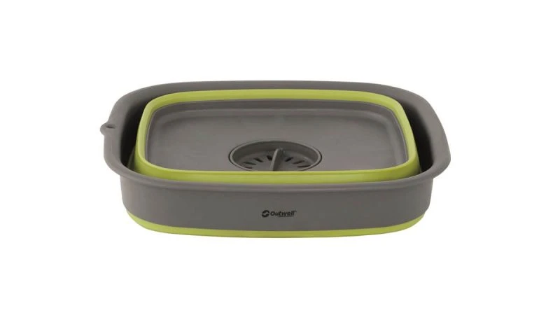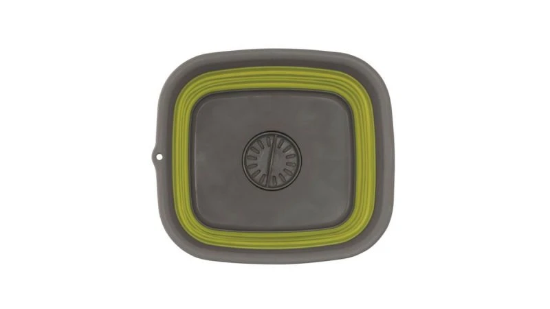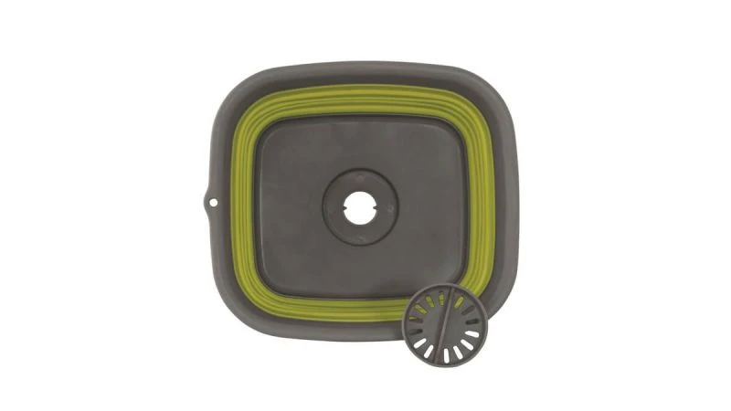 The Collaps Washing Bowl with drain collapses completely flat when not in use and is ideal for dishwashing after a meal.