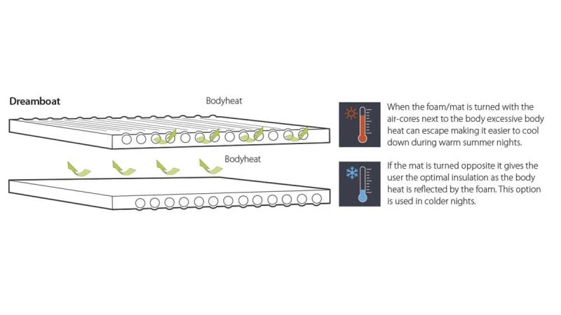 The Dreamboat Single 7.5 mat is a rectangular shaped mat designed for ultimate comfort. Its 3D shape is constructed with unique heat-regulating foam construction not only ensures a comfortable nights sleep, but it also reduces pack size remarkably.