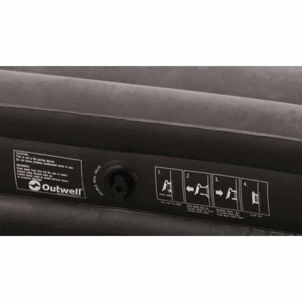 The construction of this superior flock provides an excellent firm edge for enhanced stability. The black finish looks good with any Outwell tent or for occasional use at home. The tough PVC material is tempered by the soft velour top for unrivalled levels of comfort. Other features include a double-seal valve and carrybag.