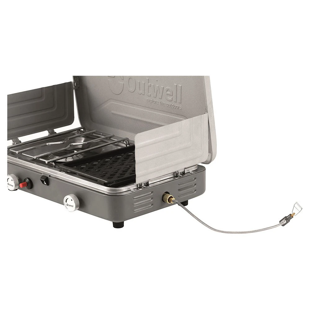 The new versatile burner Olida, join the Outwell Gourmet Cookers. This model make the combination of flexible, steel braided hoses with auto shut off and small handy gas cartridges an unbeatable combination. The stove features individually controlled burners, plastic feet for stability, auto piezo ignition and windshield protection.